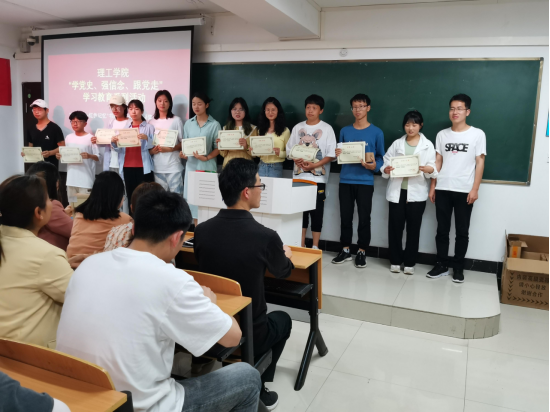 为迎接建党100周年,回顾党的光辉历程,讴歌党的丰功伟绩, 5月8日下午,理工学院在理工楼509教室举行“学党史、强信念、跟党走”系列教育活动云端告白颁奖典礼。党总支副书记张红梅、学工秘书杨晓杰老师及全体辅导员出席,杨晓杰主持颁奖活动。