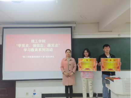 为了迎接建党100周年,回顾党的光辉历程,讴歌党的丰功伟绩,理工学院举行"学党史、强信念、跟党走"系列教育活动——最美摄影大赛。4月20日下午,学院在理工楼509教室举行了颁奖典礼。党总支副书记张红梅书记、学工秘书杨晓杰老师及全体辅导员教师出席颁奖仪式。
