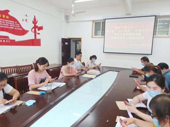 7月10日上午,“豫学习豫出彩”——第二届“学习强国”河南省千万学员万场答题挑战赛信阳学院理工学院选拔赛分教工组与学生组通过线下、线上的方式进行了比赛。教工党员通过线下的方式在理工楼201会议室进行了现场比赛,学生党员组通过线上的方式也进行了选拔。最终答题通过数量最多的教工党总支统战委员赵丹同志、学生党员宋和楷同志将代表理工学院党总支参加学校的“学习强国”挑战赛。