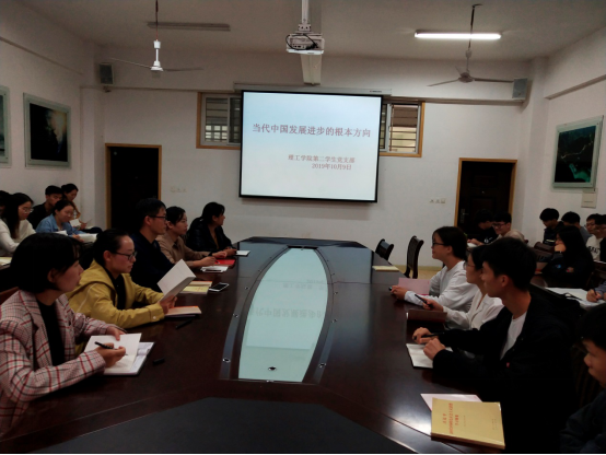 10月9日,信阳学院理工学院学生第二党支部在理工楼201会议室开展以“当代中国发展进步的根本方向”为主题的集体学习活动。会议由理工学院党总支书记张红梅、组织委员杨晓杰、纪律委员张帆、支部书记黄艳伟、副书记张若琳和学生第二党支部全体成员参加此次会议。