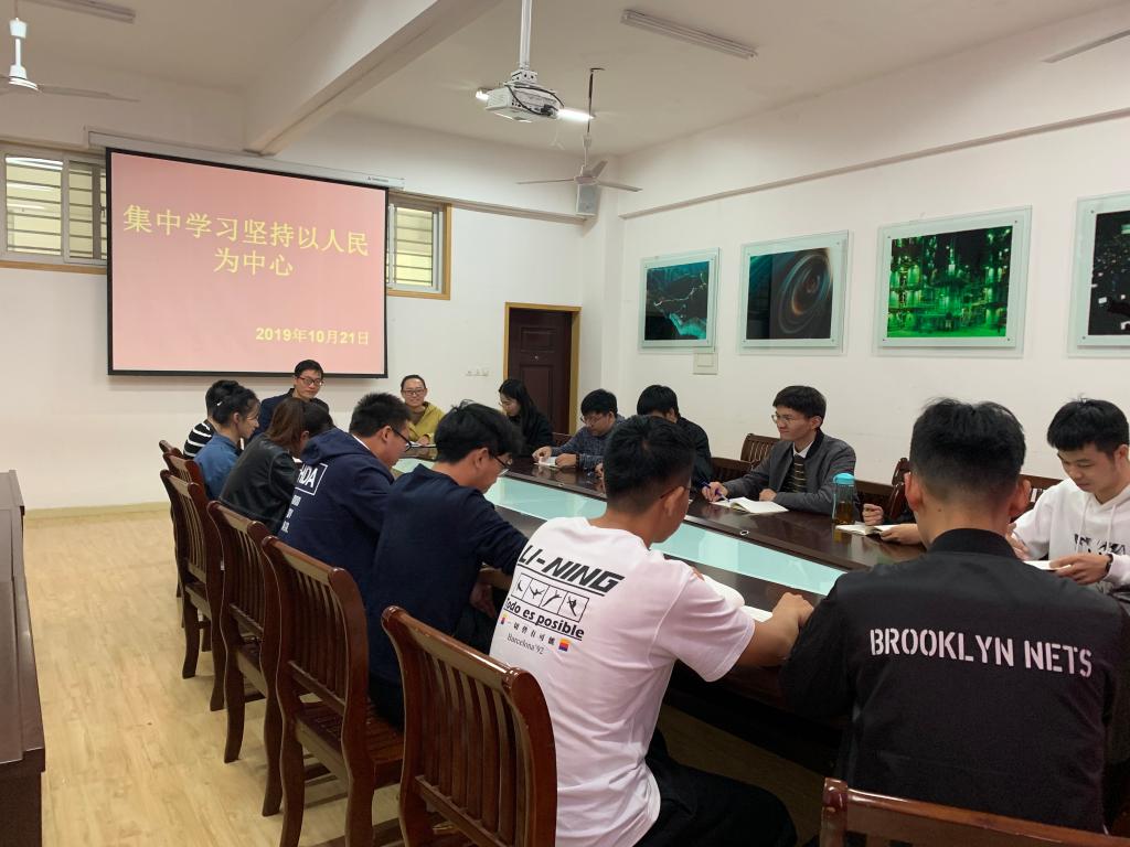 10月21日,信阳学院理工学院院学生第一党支部在理工楼201会议室开展了“坚持以人民为中心”的支部集中学习活动。本次活动主要是为了进一步发扬党的优良传统,保护人民群众的利益。会议由支部书记杨晓杰、副书记张帆和学生第一党支部全体党员参加此次会议。