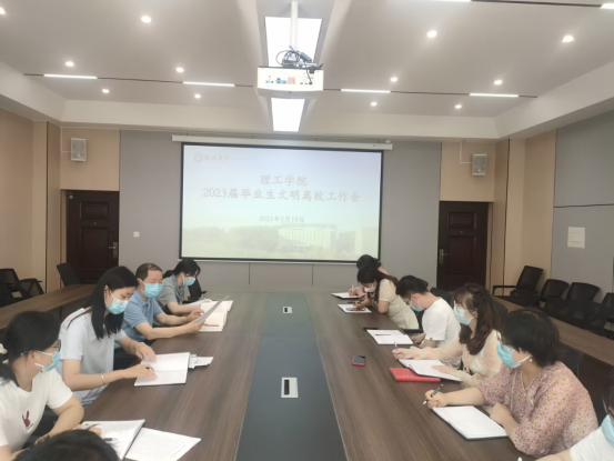 为平安稳妥做好毕业生离校工作,营造安全、和谐、文明、有序的离校氛围,5月19日上午,理工学院在理工楼201会议室举行2023届毕业生文明离校工作会。院长肖生发、教学副院长李晓严出席会议,全体辅导员及各教研室主任参加会议。
