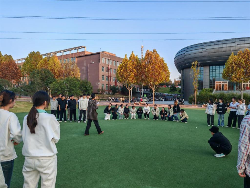 活动首先以集体萝卜蹲游戏拉开序幕。主持人将同学们随机分为6个趣味小队,每个小队自己起名,同学们奇思妙想,于是有了“人民当家作主组”“先帝创业未半而中道崩殂组”和“不知道叫什么组”等既幽默又风趣的队名。随着口令响起,大家瞬间投入状态,或紧张计数或默契接力,偶尔出错的小失误引来全场善意的哄笑,原本略显陌生的氛围在欢声笑语中迅速消融。游戏间隙,同学们自发为队友加油鼓劲,陌生的距离感在一次次下蹲、呼喊中悄然拉近,现场洋溢着轻松热烈的青春气息。