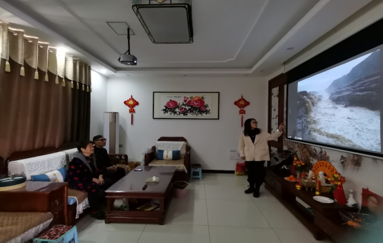郝成坤同学通过PPT的形式,对居民进行宣讲与演示,向他们重新梳理一遍黄河与人类的渊源,并展示了党对黄河的治理方案及决心,使居民更加充满信心。