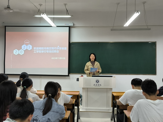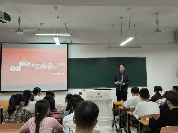 为更好的拓宽毕业生就业渠道,切实做好理工学院毕业生就业服务工作,11月2日晚,南阳市南召现代中学在我校理工楼608举行专场招聘会,学工秘书杨晓杰、毕业班辅导员杨康强及近百名毕业生参加了招聘会。