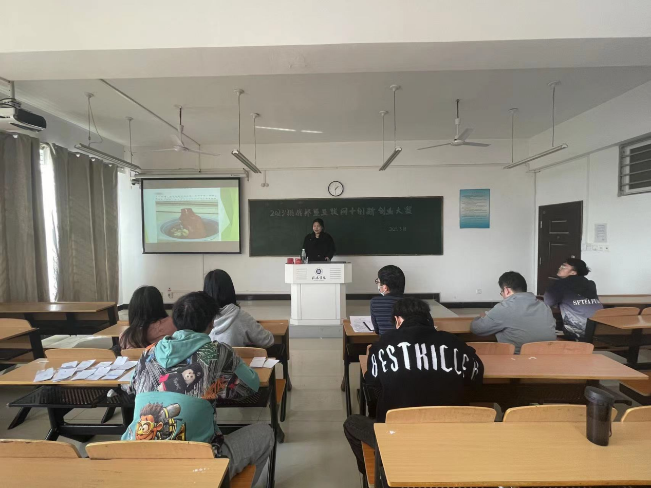 为激发同学们参加创新创业比赛的热情,2023年3月15日中午,理工学院在理工楼505、506举办了2023年“挑战杯”暨“互联网+”大学生创新创业大赛。比赛由学工秘书杨晓杰、全体辅导员担任评委,由学习部干事刘明洋、姚家豪主持。本次比赛共有21项参赛项目。