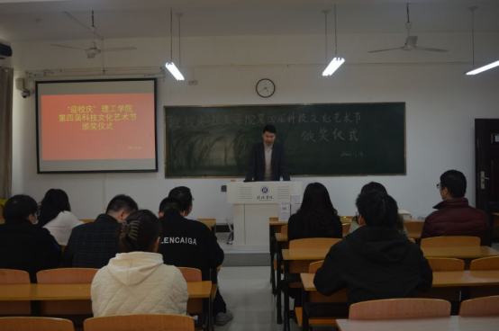 11月16日下午,理工学院在理工楼504教室举行了第四届科技文化艺术节颁奖活动。此次活动的参与者有党总支副书记张红梅、学工秘书杨晓杰、全体辅导员及获奖学生代表。