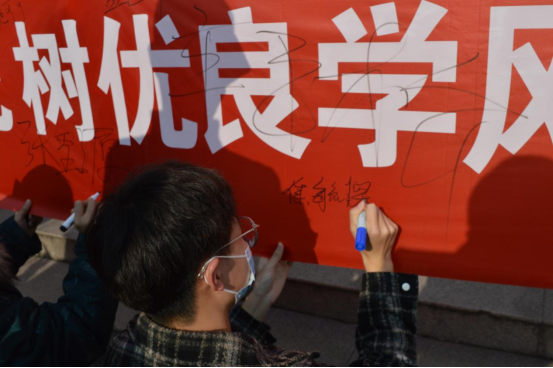 1月5日下午,学院组织学生代表在理工楼前进行诚信应考签名,同学们纷纷表示将坚守文明考风、良好的学风、文明的校风,会把时间和精力放在复习考试上,自觉抵制考试作弊行为,考出真实水平,考出真才实学,考出诚信风采。