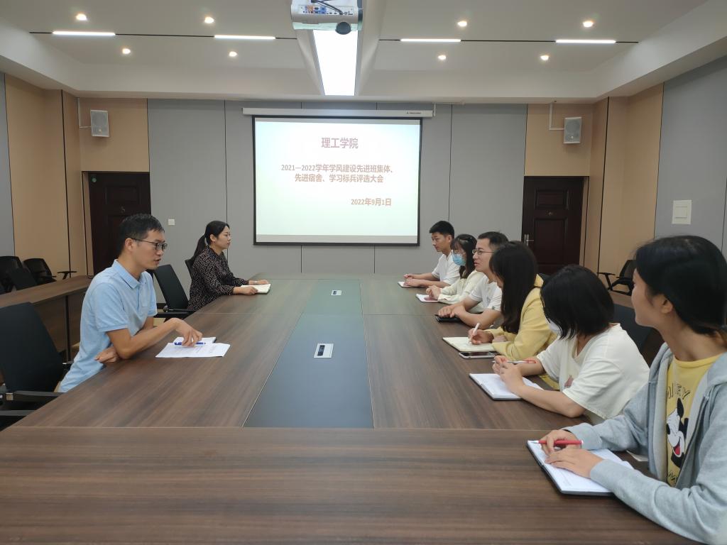 9月1日下午,理工学院采用线上线下相结合的方式开展2021—2022学年学风建设先进班集体、先进宿舍、学习标兵评选活动。学院党总支副书记张红梅、学工秘书杨晓杰、全体辅导员、学院学生代表参与评选。