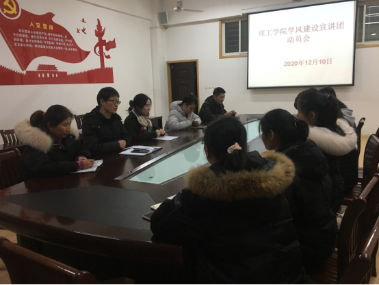 12月10日下午,在理工楼201会议室由教学副院长李晓严指导召开理工学院2020—2021学年学风建设宣讲团动员会。会议由学工秘书杨晓杰主持,理工学院全体辅导员、以及获得优秀学风建设的班级和宿舍学生代表参加了会议。