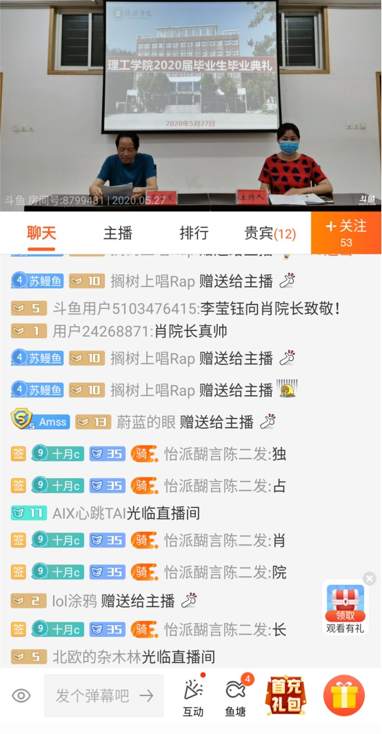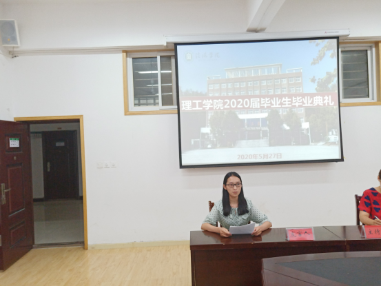5月27日下午,学院在理工楼会议室举行2020届毕业生线上毕业典礼,院长肖生发、党总支副书记张红梅、全体行政班子和全体辅导员参加了典礼。理工学院全体教师和428名毕业生通过斗鱼直播APP观看了毕业典礼。张红梅主持了毕业典礼。